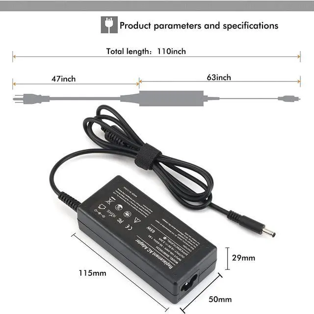 Input: AC 100-240V 1.5A 50-60Hz Output:19.5V 3.34A 65W Inner diameter :4.5*3.0mm