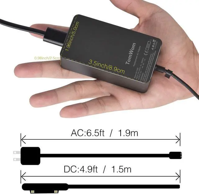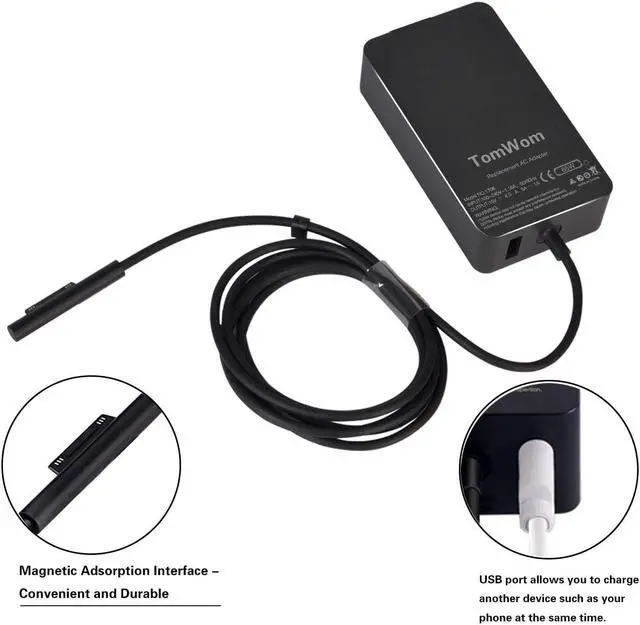 65W Microsoft Surface Charger quickly recharges the battery and the USB port allows you to charge another device such as your phone at the same time.Easy to use--just plug in the adapter and connected to your device.Don't wait another minute, get this charger right now! We provide excellent customer service before and after your purchase. Your satisfaction is our priority. Just choose TomWom!