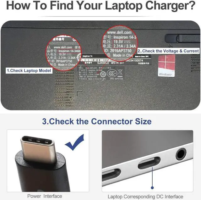 Power Output:USB-C port:5V/3A, 9V/3A, 12V/3A,15V(14.5V)/3A,18V/3A,20V(20.3V)/3A(Compatible 29W 30W 45W 61W)