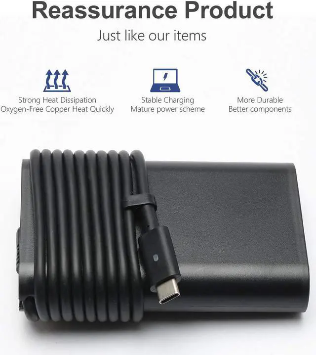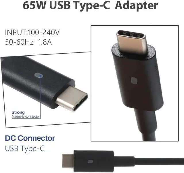 65W USB C Type C AC Adapter Charger for Dell Latitude 12 5285 5289 5290 7212 7275 7285 7290 Latitude 13 14 XPS 12 9250 XPS 13 9380 9350 9360 9365 9370 LA65NM170 HA65NM170 02YK0F 0M1WCF Supply Cord