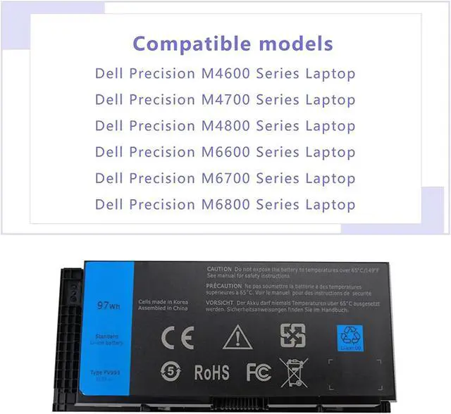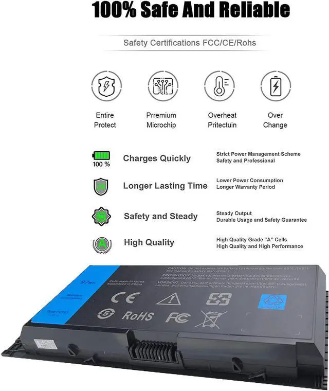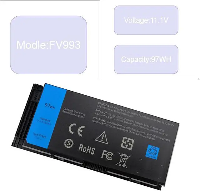 ??Product Features:Battery type: Lithium ionCapacity: 97Wh / 8600mAhcells: 9-cellVoltage: 11.1V??Compatible Part Number:FV993 KJ321 FJJ4W R7PND PG6RC RY6WH V7M28 0FVWT4J5CG3 1C75X 3DJH7 97KRM 9GP08 FVWT4 V7M28 0TN1K5??Compatible Laptop Models:Dell Precision M4600 Series LaptopDell Precision M4700 Series LaptopDell Precision M4800 Series LaptopDell Precision M6600 Series LaptopDell Precision M6700 Series LaptopDell Precision M6800 Series Laptop??Satisfactory after-sales service:??12 months warranty ??60 days refund ??180 days replacement ??24/7 mail support Notice:1-For computer users, please press ctrl + F to search for your model on the current page2-If the battery cannot be used normally, the most important thing is to contact me and replace it with a new battery for you3-Let me know if you have any issue or concerns, I will get back to you within 24h