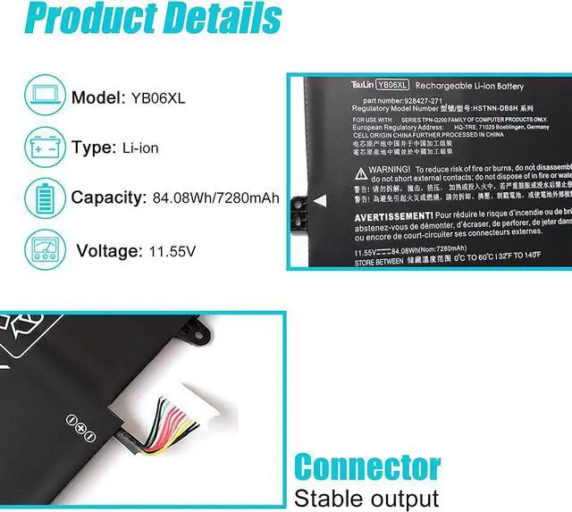 Replacement for Part Number: HSTNN-DB8H, HSTNN-DB8V, TPN-Q200, YB06084XL, YB06XL,926372-855, 926427-271, 928372-855, 928372-856, 928427-271, 928427-272,