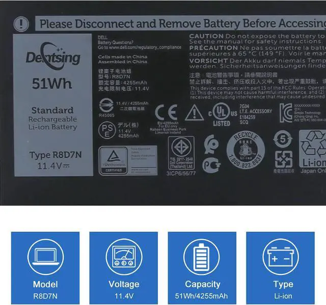 • The?package?includes:?1X?R8D7N battery,?instruction?manual. Before?purchasing,?please?open?the?back?cover?of?the?laptop?to?confirm?the?battery?model?and?capacity.