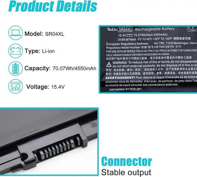 SR04XL SRO4XL 917678-171 917678-1B1 917678-2B1 917724-855 HSTNN-DB7W HSTNN-IB7Z HSTNN-IB72 TPN-C133 TPN-C134 TPN-Q193