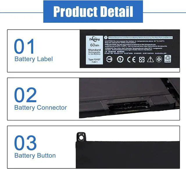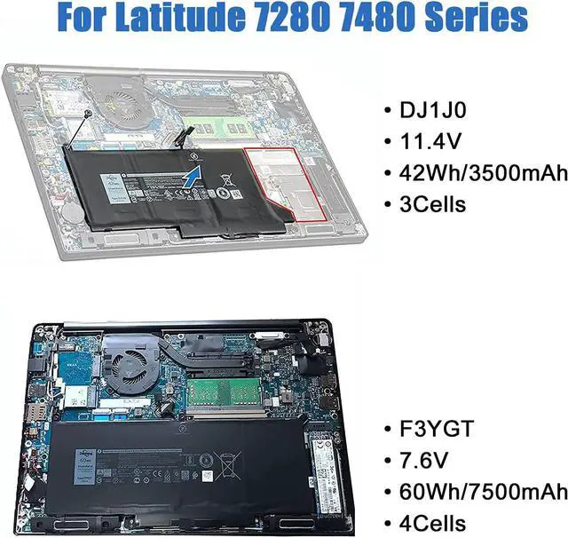 Note:There are two types of batteries for these laptop models:42Wh DJ1J0 or 60Wh F3YGT, please check your original battery model.