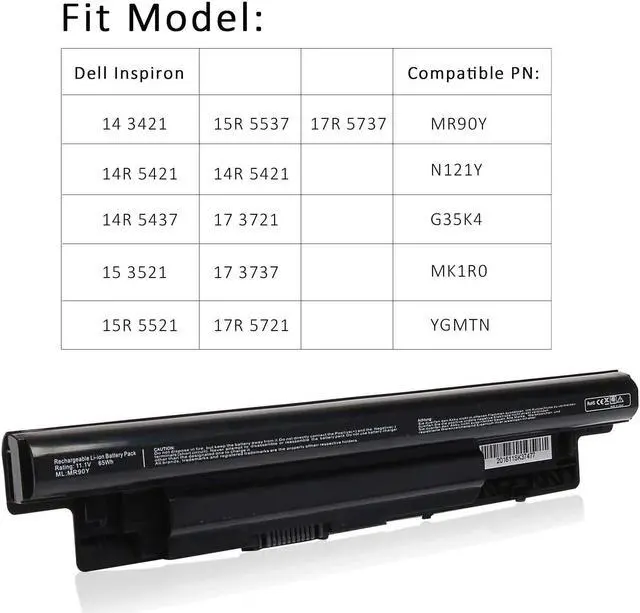 New MR90YXCMRD Laptop Battery Compatible with Dell Inspiron 15 5000 Series 15-3521 15-3537 15-3541 15-3542 15-5521 15R-N3521 15R-N5521 15R-1528R[11.1V 65Wh]