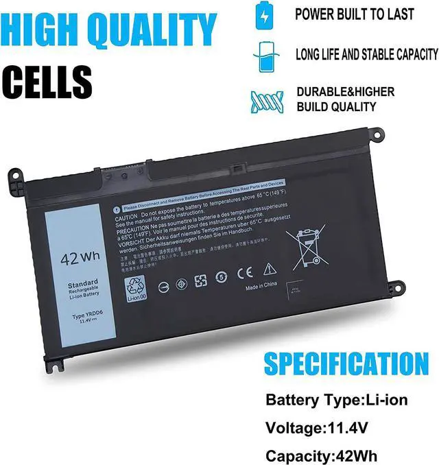 Burflo YRDD6 Battery for Dell Inspiron / Latitude / Vostro Perfect for 3493 3501 3583 3593 3793 5481 5485 5491 5584 5593 3310 5590 High Capacity Cells: