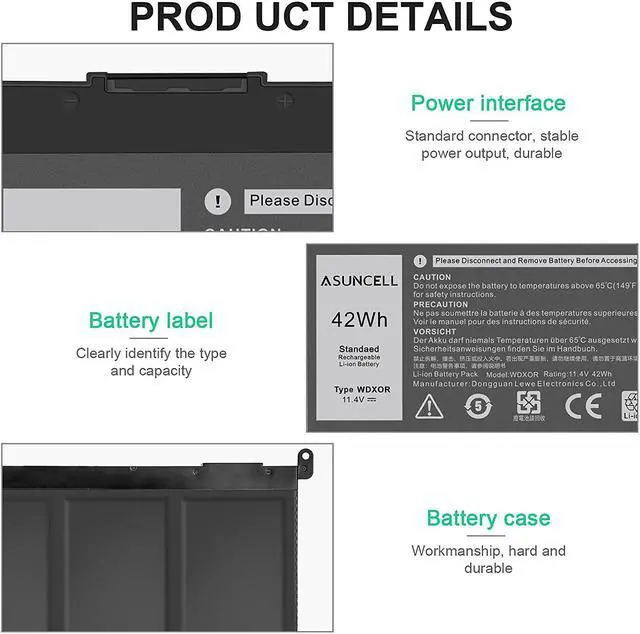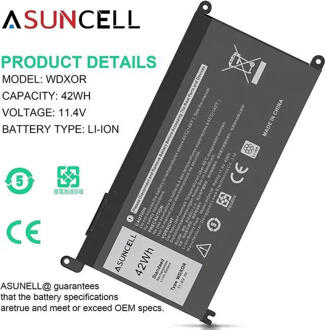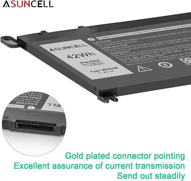 WDXOR BATTERY REPLACEMENT - Battery type: Li-ion. Color: Black. Voltage: 11.4V. Capacity: 42Wh. Cells: 4-cell. 100% New from Manufacturer. Up to 500 recharge cycles over the life of the battery.