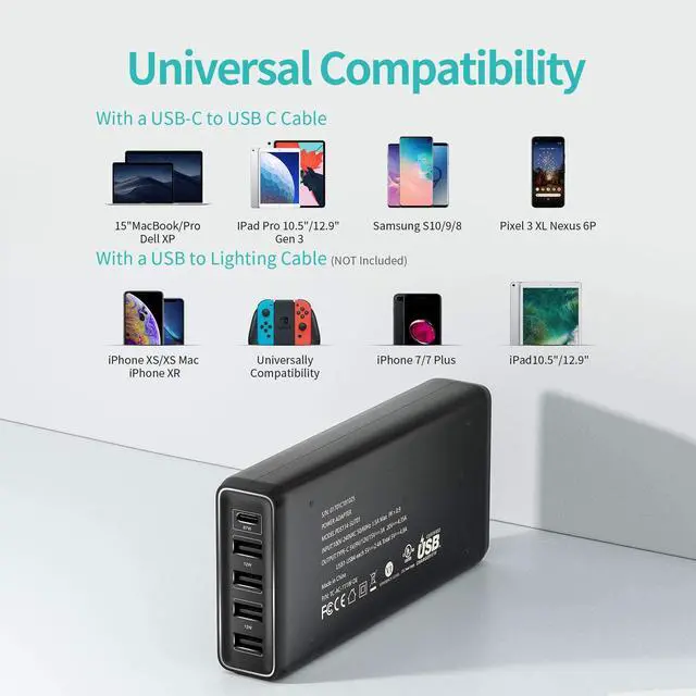 USB-C/A to Lightning Cable is NOT included.