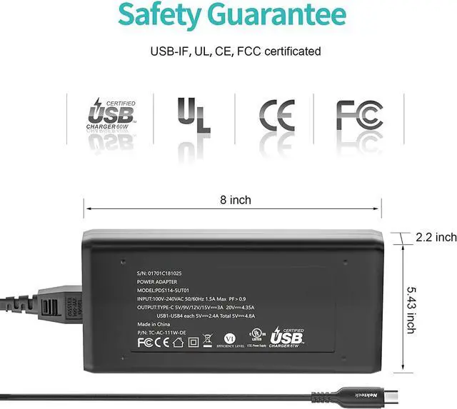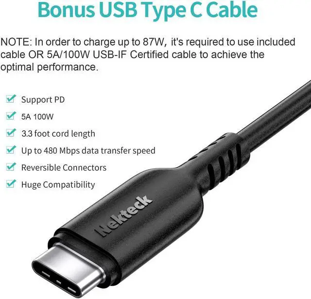 It's REQUIRED to use included cable or 5A/100W USB-IF certified cable to charge at full speed.