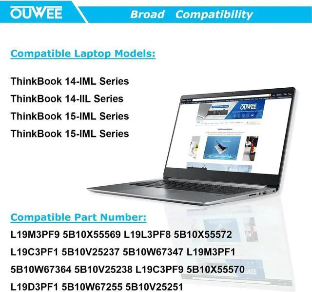 OUWEE L19C3PF1 Laptop Battery Compatible with Lenovo ThinkBook 14-IML 14-IIL 15-IML 15-IIL Series L19M3PF2 L19D3PF2 L19L3PF1 L19D3PF1 L19M3PF1 L19M3PF9 L19C3PF9 L19L3PF8 11.52V 45Wh 3950mAh