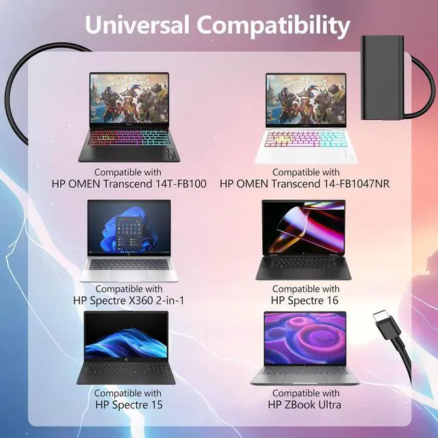 Wide Compatibility140W USB-C power adapter compatible with HP OMEN Transcend 14 charger 14t-fb1000 14-fb1047nr 14-fb0023dx 14-fb0013dx 14-fb0097nr OMEN Transcend 14 14-fb0000ca 14-fb1010ca 14-fb1020ca 14-fb1030ca Omen 14-fb0000 14-fb0073ng 14-fb0098ng 14-fb0174ng 14-fb0175ng 14-fb0775ng 14-fb0796ng 14-fb0797ng 14-fb0774ng 14-fb0777ng 14-fb0776ng 14-fb0799ng 14-fb0798ng 14-fb0695ng 14-fb0195ng 14-fb0295ng 14-fb0274ng 14-fb0375ng 14-fb0196ng 14-fb0696ng