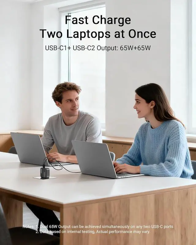 USB-A: 5V3A / 9V2A / 12V 1.5A / 10V 2.25A ( 22.5W Max)Output (Two Port in Use) USB-C1 + USB-C 2: 65 W + 65W; USB-C1 / C2 + C 3: 65 W + 65W; USB-C1 / C2 +