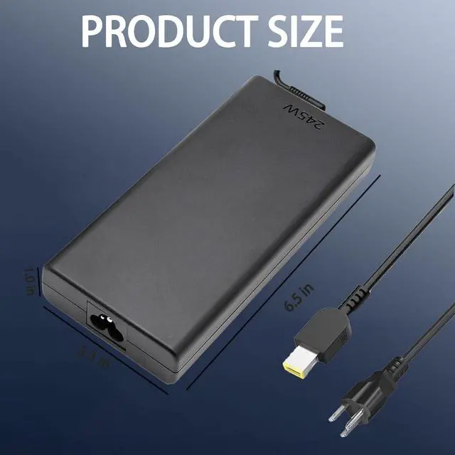 Specifications Input: 100-240V 50-60Hz, Output: 20V 12.25A 245W. Connector Size: Slim Tip (3-pin)