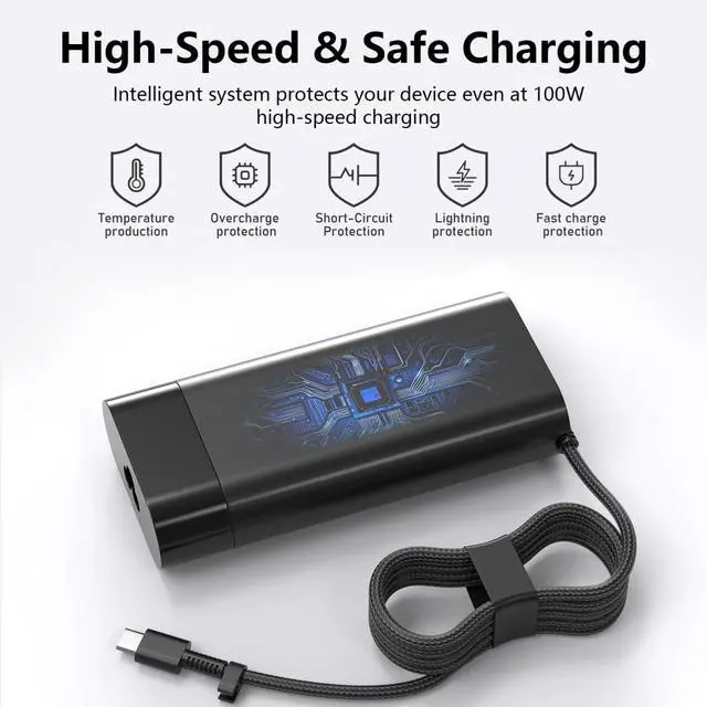 100W PD Fast Charging for OmniBook 7 Peak PerformanceTailor-made for HP OmniBook 7 series laptops, this 100W USB-C charger fully matches the official power specification of OmniBook 7s 100W USB-C power adapter requirement . Equipped with PD 3.0 fast charging technology, it delivers stable 100W output to power AI-enhanced tasks, video editing, multi-tasking, and casual gamingperfectly supporting Intel Core Ultra/9 processors and discrete graphics models . It can recharge your OmniBook 7s battery to 50% in 30 minutes (varies by model), saving you time on the go.