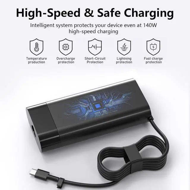 140W PD 3.1 PPS Charging for HP High-Performance Laptops This charger adopts PD 3.1 PPS technology, supporting max 140W output (28V/5A) to fully meet the power demands of HPs flagship laptops. It automatically adjusts charging parameters to match your device, delivering efficient and battery-friendly chargingwhether youre gaming, editing videos, or handling heavy office tasks. Compatible with HPs original 140W USB-C adapter (model B7NK0AA), its a reliable replacement for lost or damaged chargers. Precise Compatibility with HP Key Models Tailored for HPs top laptop series (all USB-C/Thunderbolt 4 enabled): OMEN Series OMEN Transcend 14: 14-fb0000/14-fb0003nia/14-fb0009nia OMEN Transcend 16: 16-u1003np OMEN Gaming 16: 16-am0124nn/16-AP0007LA OMEN MAX Gaming 16: 16-ah0001nc/16-ah0005ci/16-ak0003nc OMEN Slim Gaming 16: 16-an0004ua Spectre Series Spectre x360 16-aa: 16-aa0004na/16-aa0006ci/16-aa0012nn Victus Series Victus Gaming 16: 16-r1776ng/16-r0099nia/16-r0053nia Workstation & Business Series ZBook Series: ZBook 8 G1i 16/ZBook Ultra 14 G1a EliteBook X G1a: 14-inch Next Gen AI Series
