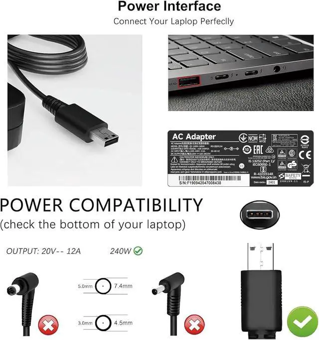 Specifications: Input: AC 100-240V, 50/60Hz,Output Voltage: 12A / 20V 240W