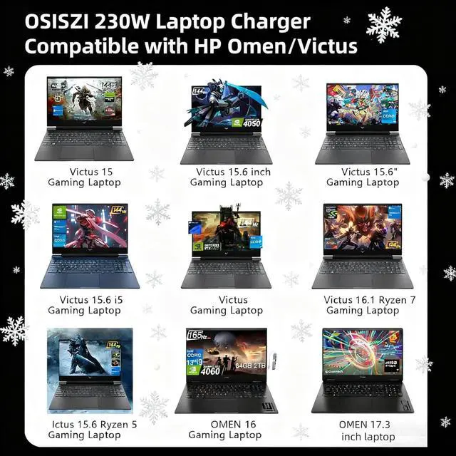 OSISZI 230w laptop charger compatible with HP OMEN 16 17 Connector size:4.5*3.0mm 230W Laptop Charger