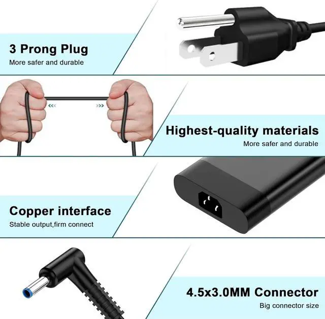 Power Specs:Input : 100-240V 50-60Hz, Output: 19.5V-10.3A, Watt:200W Also Compatible with 150W 135W 120W,Connector Size:4.5mm 3.0mm Blue Tipplease check your laptop specifications before buy it.
