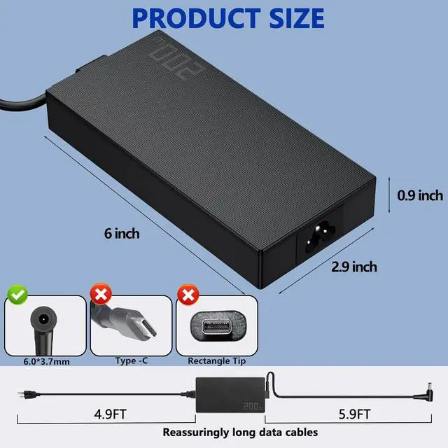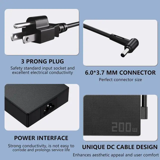Specifications of Asus Laptop Charger: Input: 100-240V 50-60Hz; Connector Size: (6.0 x 3.7mm ) Package Includes-1 X 200W for Asus Laptop Charger, 1 X Power Cord