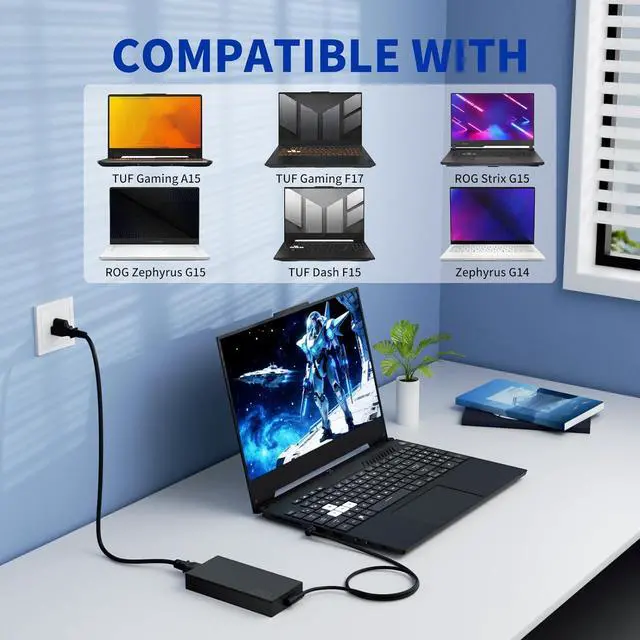 For Asus Laptop Charger Replacement: Compatible with ROG Strix G15 G513 G513RC G513IC G513IE G513IR G513QC, ROG Zephyrus G15 GA503 GA503RM GA503R GA503QM GA503QR GA503QS GA503QE GA503QC GA502 GA502IU GA502IV GA502DU, Zephyrus G14 GA401 GA401QC GA401QE GA401QM GA401QH GA401IHR GA401IH GA401II GA401IU