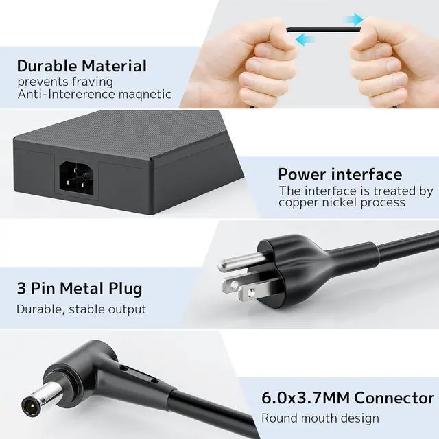4.Compatibility: Replacement for Asus ROG Flow X16 GV601 GV601VU GV601VV GV601RM GV601RE GV601VV-BH96 X16.I94060; GV601VU-DS91T-CA; GV601RM-M5120X X16.R93060; GV601RW-XS96 M5049W M5082W M5110X; GV601RE-M5057X ; Fit For Asus ProArt Studiobook 16 3D OLED H7604JI H7604JV ProArt Studiobook Pro 16 OLED W5600 W7600 W7600Z3A W5600Q2A W7600H3A W7600H5A ProArt Studiobook 16 OLED H5600QE H5600QR H5600QM H7600HM H7600ZM H7600ZX H7600ZW Zenbook Pro Duo 15 OLED UX5100ZM UX582ZW UX582ZM Power AC Adapter