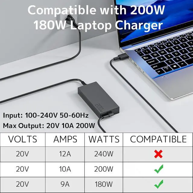 1.POWER PARAMETERS: Input: 100-240V, 50-60Hz 3.5A, Output: 20V-10A 200W, Max Watt: 200W, Connector Type: Rectangle Conn, (Also compatible with ASUS 180W Gaming Laptop Charger)