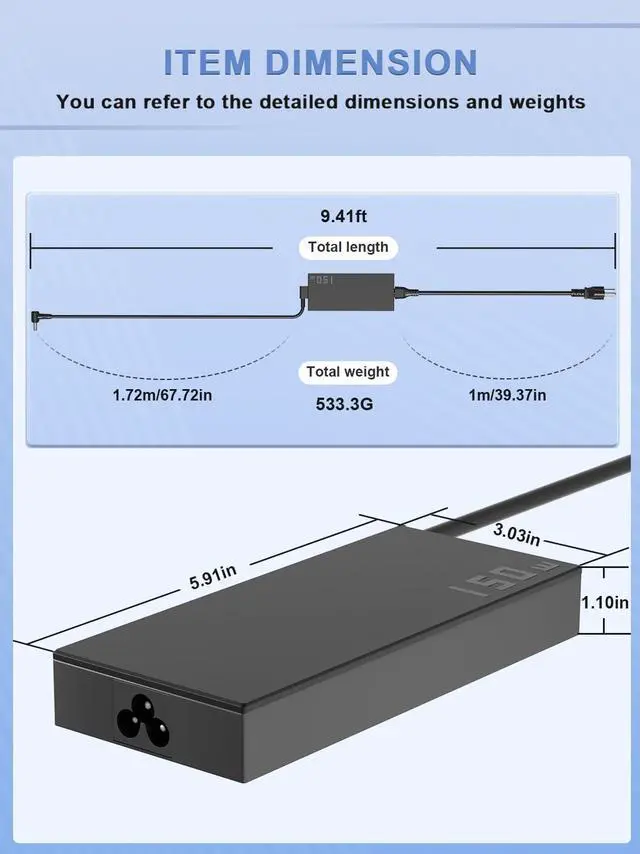 [Full Package & 12-Month Peace of Mind]; Your purchase includes 1x 150W AC Adapter and 1x Detachable Power Cable, all backed by a professional 12-month warranty and a 30-day easy return policy. We focus on providing high-quality power solutions and responsive customer support. If you have any questions about compatibility or specifications, our team is here to help, ensuring a worry-free shopping experience from day one.
