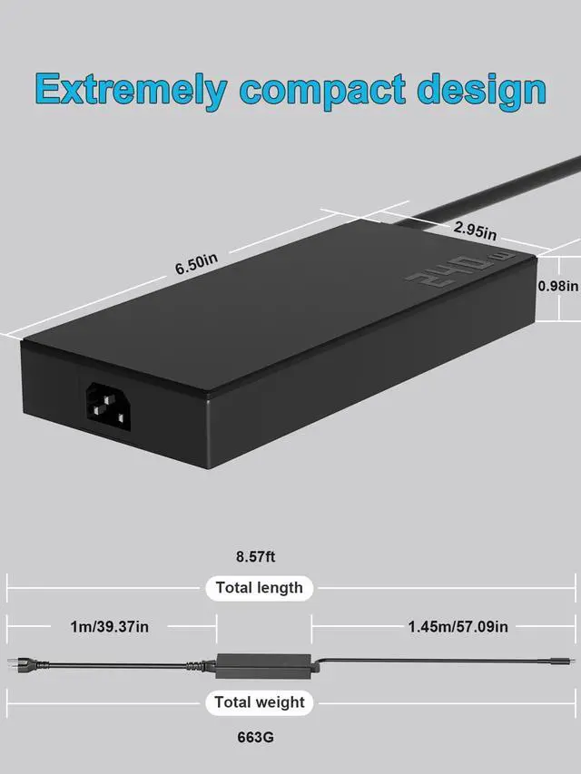 Specification: Input Voltage: 100-240V, 50-60Hz (Worldwide use), Output Voltage: 240W 20V/14A, (also Works for 200W 180W 150W Wattage Devices).Power Jack Connector Type: Rectangle Conn. (It is not fit for laptops devices requiring more than 240W)