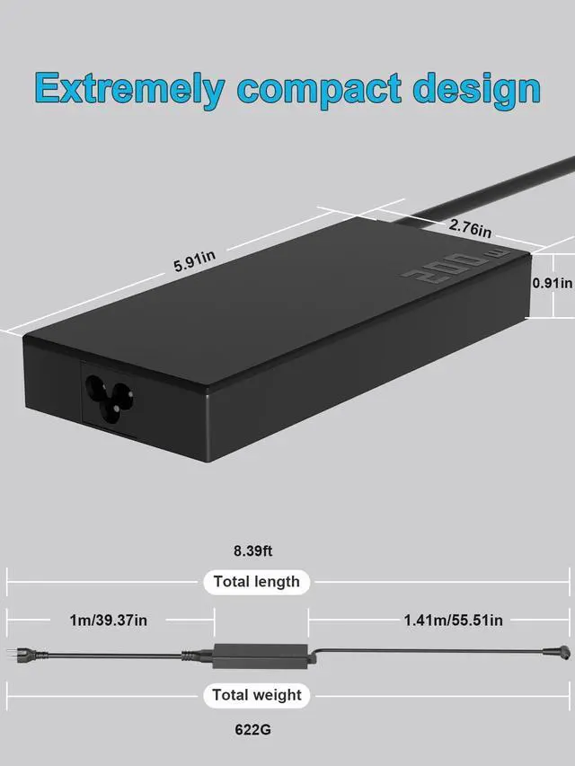 ADP-200JB D Specification: Input Voltage: 100-240V, 50-60Hz (Worldwide use), Output Voltage: 200W 20V/10A, (also Works for 150W 180W Wattage Devices).Power Jack Connector Type:6.0mm 3.7mm Round Tip. (It is not fit for laptops devices requiring more than 200W)
