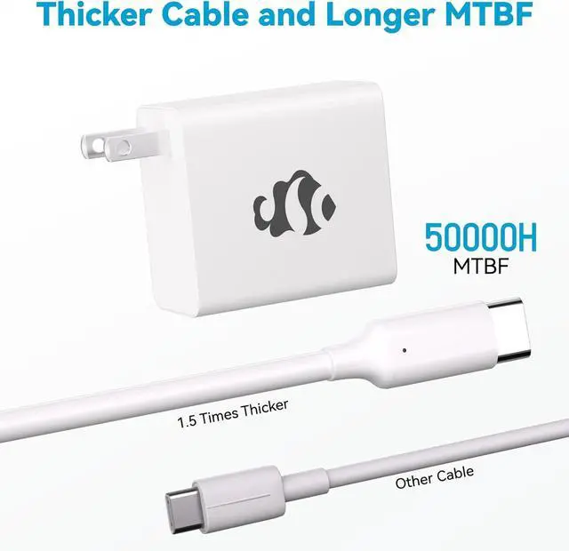 Built for Reliability & Durability: The MacBook charger features reinforced internal wiring, with a cable diameter 1.5 times thicker than standard cables. With a 50,000-hour Mean Time Between Failures (MTBF), its designed for long-lasting performance, ensuring reliability and durability. The robust design withstands frequent use, providing long-term value and peace of mind.