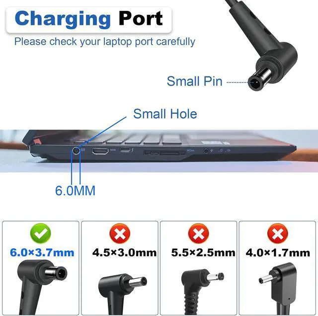 Input: 100-240V 50-60Hz 1.8A Output: 20V 14A Output Power: 280W Connector Type: 6.0*3.7MM