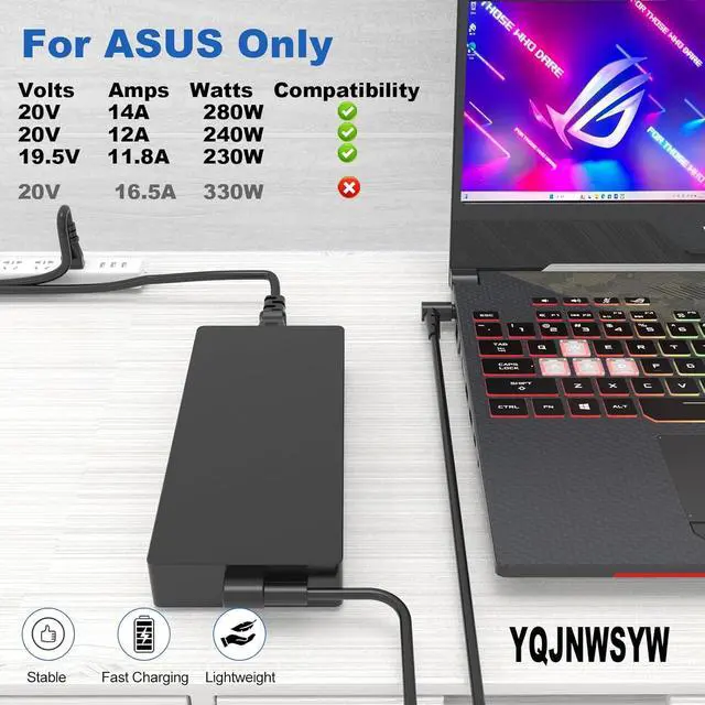Compatible with ASUS TUF Gaming A16 (2024) FA607PI FA607PV, TUF Gaming A16 Advantage Edition (2023) FA617XT FA617NT FA617NTR, ROG Flow X16 (2023) GV601, ROG Zephyrus Duo 16 (2022) GX650, ROG Zephyrus M16 (2023 2022) GU604 GU603, ROG Zephyrus G14 (2022 2023) GA402, ROG Zephyrus G16 (2023) GU603, ROG Strix G17 Advantage Edition G713, ROG Strix G15 Advantage Edition G513, ROG Zephyrus Duo 15 SE GX551 Laptop Charger