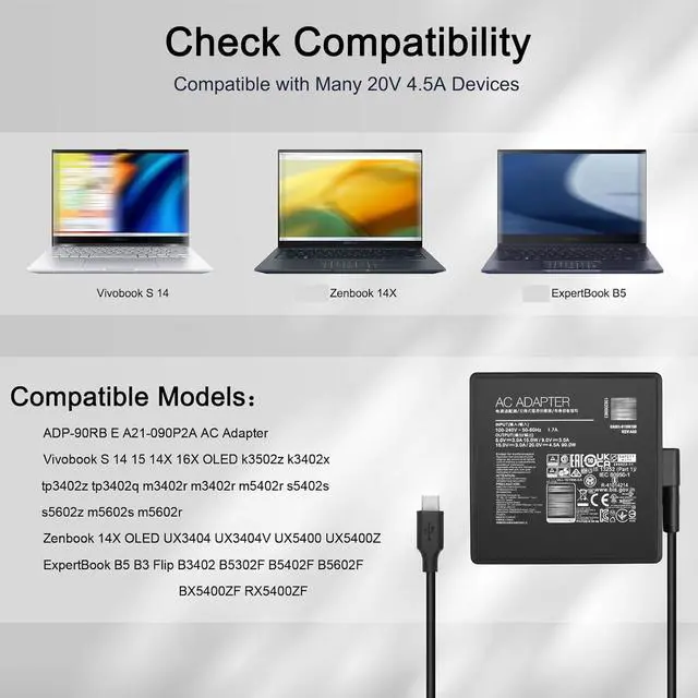 Compatible with Asus ExpertBook B5 B3 Flip B3402 B5302F B5402F B5602F BX5400ZF RX5400ZF laptop charger
