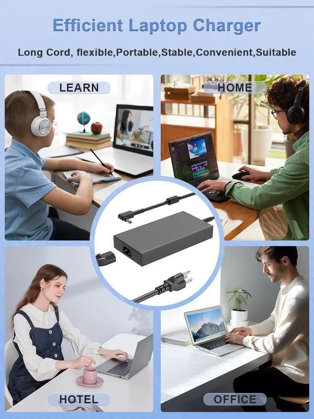 Efficient charging --- This Portable adapter provides a stable power output to ensure that your computer is kept in tip-top condition. Whether it's a busy morning or a temporary urgent need, it can quickly charge and restore the best condition of your device, so you don't have to worry about downtime. The durable design eliminates the need for frequent replacement, making it easy to support you at home, at school, at office, or on the go