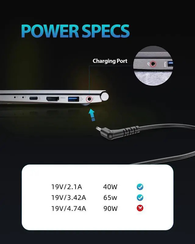 Wattage: Output: 19V 3.42A 65W (Compatible with 48W 45W 40W) Input:100-240V