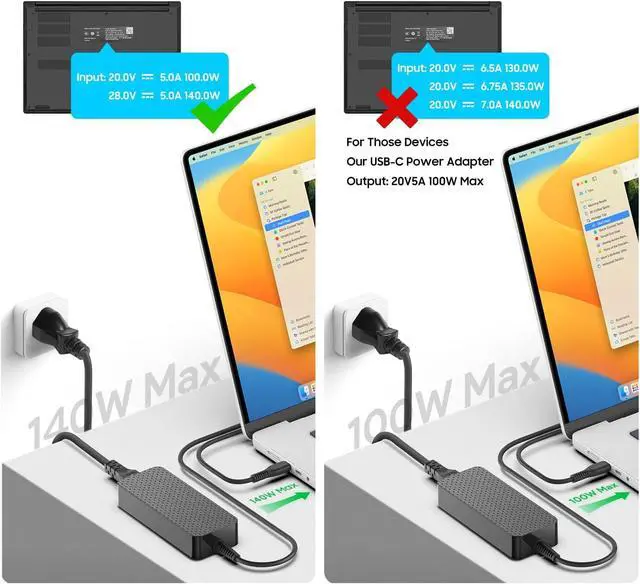 Input: AC 100-240V, 50-60Hz; Output: DC 28V/5A 140W, 20V/5A 100W. ATTENTION: NOT for 20V6.5A 130W/20V 6.75A 135W/20V7A 140W!!! Do not buy if your device output requires more than 5A