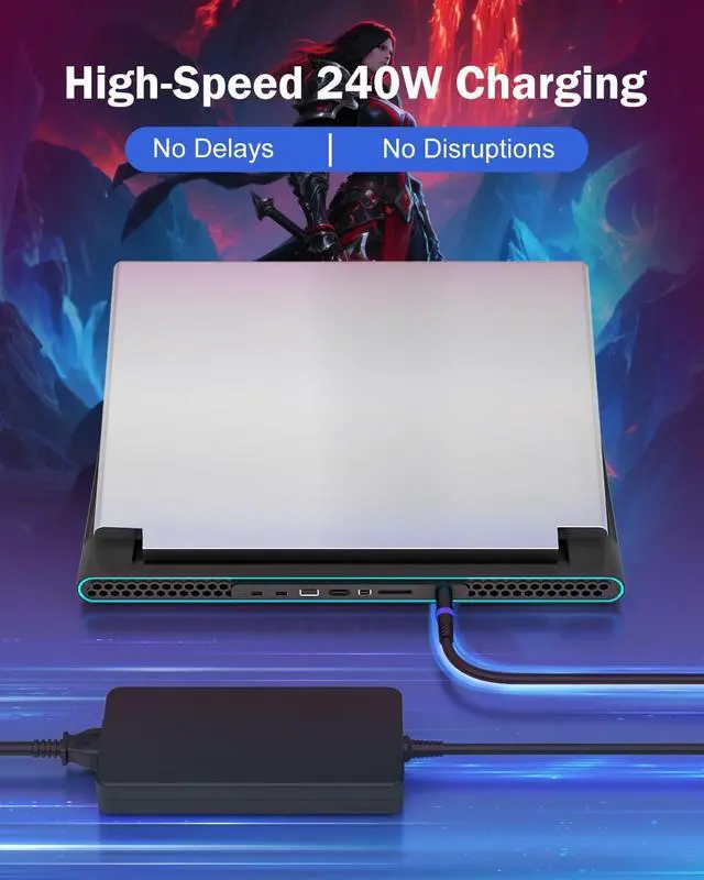 High-Powered 240W Output for Rapid Charging Delivering a robust 240W of power, this charger ensures your laptop is charged quickly and reliably, so you can return to your tasks or gaming without delay. The charging indicator is designed to provide instant feedback on charging status and is clearly visible in the dark, making it easy to connect without having to turn on a light.