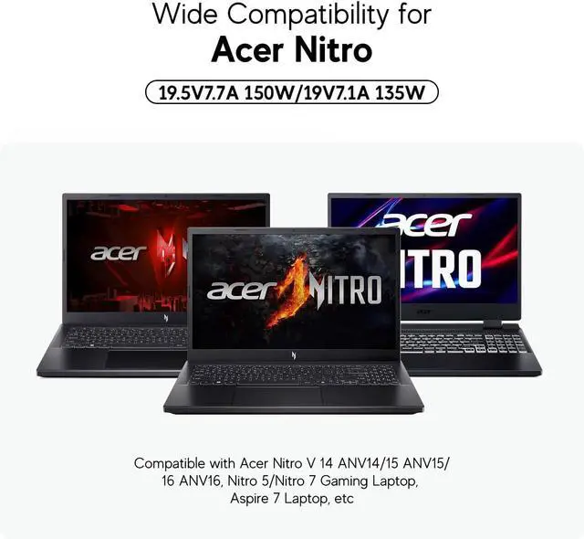Wide Compatibility for A cer Nitro V16 V15 V14Car Charger replacement for Nitro V15 V14 V16, ANV15 ANV14 ANV16 150W Watt ADP-150NB D 135 Watt PA-1131-16 PA-1131-26 Power Adapter Replacement ADP-150NB D ADP-135KB T ADP-135NB B Laptop. Perfect companion for long road trips, daily commuting, or powering up your gaming laptop in trucks, buses, RVs, campers, and boats.