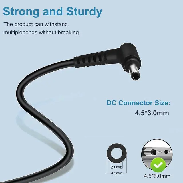 Input: 100-240v 50-60Hz. Output: 20V 7.5A 150W Max. Connector size: 4.5*3.0mm. JUYOON 20V 7.5A 150W Charger compatible with MSI GF63 Thin GF66 GF76 laptop