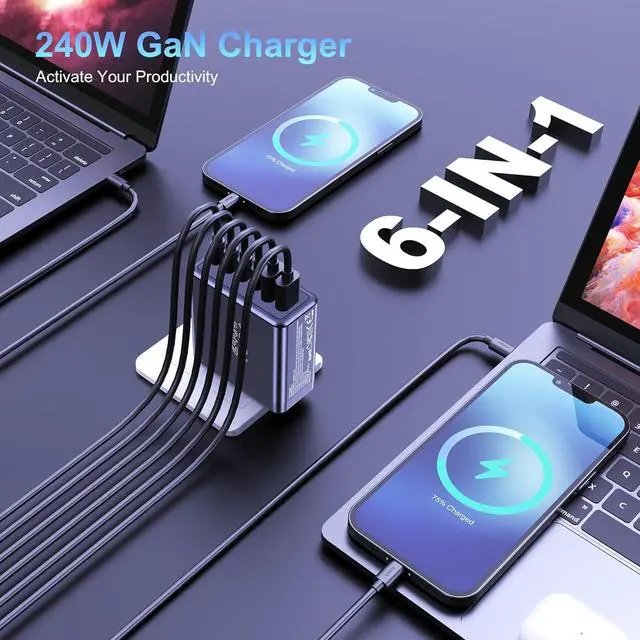 Package Content: Graaci 6 Ports 240W GaN PD3.1 charger, user manual, 12 month warranty service, and our team service for quick response within 12 hours