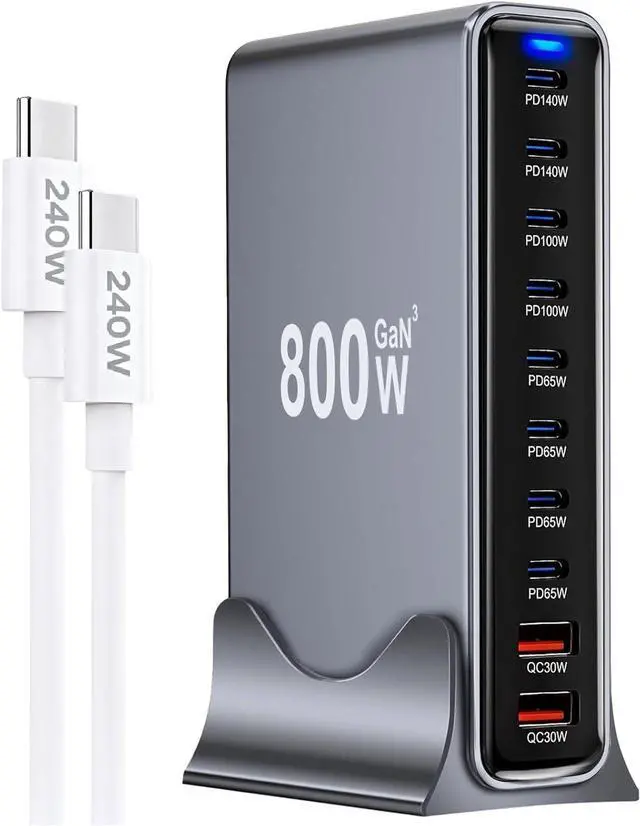 What You Get 1 pack 800W USB C Charger Station,1.5m/4.9ft 240W Type-C to Type-C Fast Charging Cable, welcome guide, Were committed to providing excellent customer support. If you have any issues with your USB C charger, feel free to contact us anytime, and we'll resolve your issue within 24 hours.