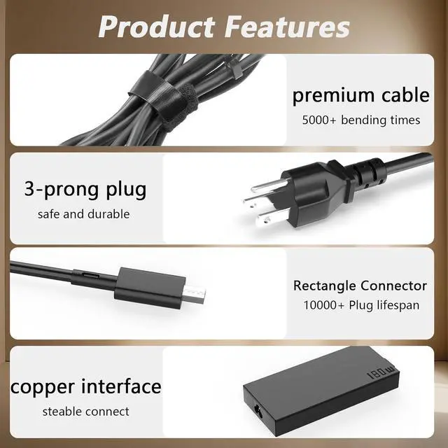 What You Get: 1 x 180W Power Adapter, 1 x Power Supply Cord