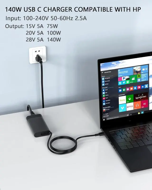 140W Fast Charging & Wide Compatibility: This 140W USB-C laptop charger delivers high-speed charging with multiple outputs, perfectly compatible with HP and other USB-C devices.