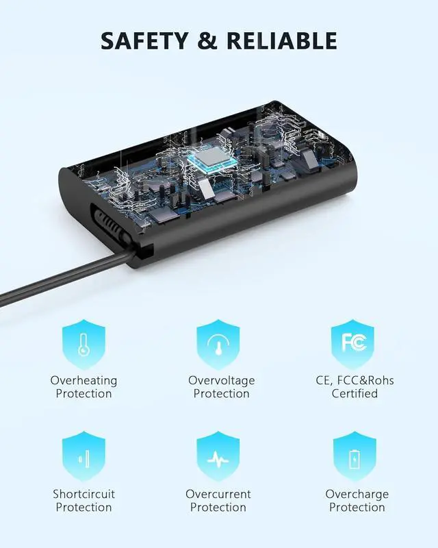 Built-in Multi-Protection System: Advanced safety features prevent over-voltage, over-current, and overheating, ensuring stable and reliable charging for your devices.