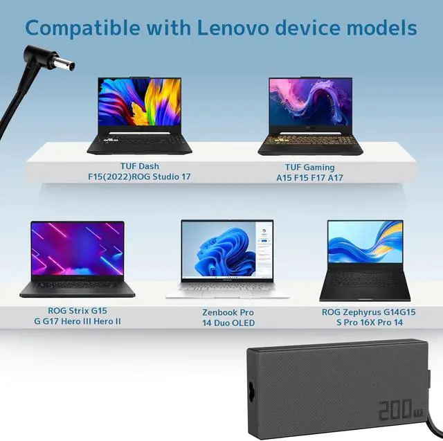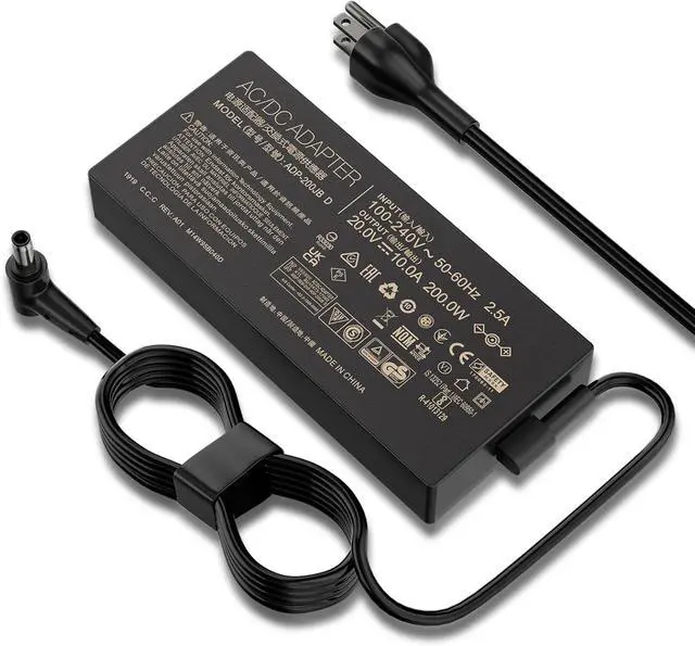 1.Power Specs Input: 100-240V 50-60Hz | Output: 20V 10A 200W | Connector: 6.0x3.7mm Round Tip. Also compatible with 20V 9A (180W) and 20V 7.5A (150W) laptops.