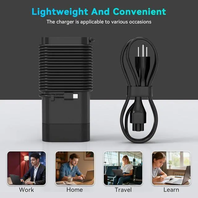 SafetyThe charger has an electronic safety certification that complies with the appropriate standards, and the built-in laser soldering technology ensures that the port section will not break. The longer SR break-resistant design enhances the durability of the cable. With a compact design, the charger is easy to carry and store. Saves more space for power strips, ideal for home, office, and travel. With increase in operating frequency, an innovative stacked design, and an upgraded circuit board structure, new technology makes our latest charger smaller without sacrificing a drop of power. Power up your laptop and give you the productivity & flexibility you need quickly