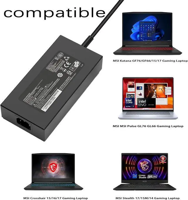Compatible with MSI 240W Pulse GL76 GL66 12UGSZOK 12UGSZK 12UGOK 12UGK 12UEOK 12UEK GL66 12UGKV 12UCK 12UDK 12UEPulse 15/17 B13VFK B13VGK B13VEK-277US B13VGK-484USB13VFK-413US B12VGK-217CA Pulse 16/17 AI C1VGKG, C1VFKGStealth 14 AI Studio A1VGG A1VFG A1VEG Stealth 14Studio A13VG A13VF A13VE.