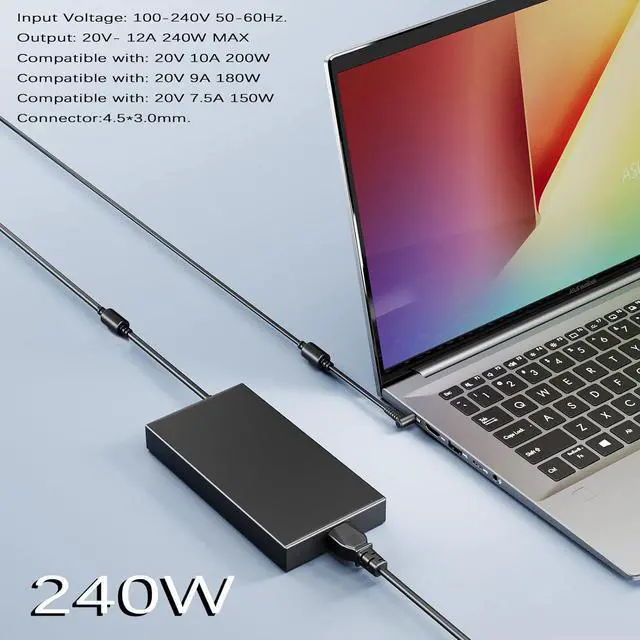 Input Voltage: 100-240V 50-60Hz Output: 20V- 12A 240W MAX; Compatible with 20V 10A 200W / 20V 9A 180W / 20V 7.5A 150W; Connector:4.5*3.0mm.