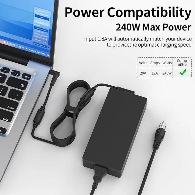 Input: 100240V 5060Hz Output: 20V 12A 240W Dc Jack Size: 6.0 × 3.7Mm Compatible With 20V 9A 180W Charger